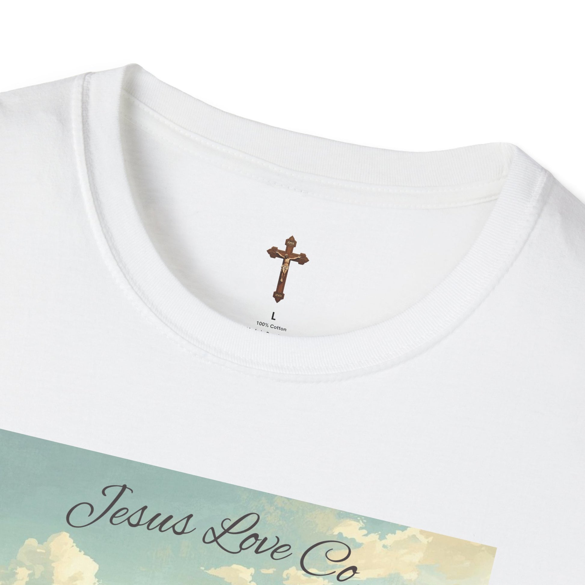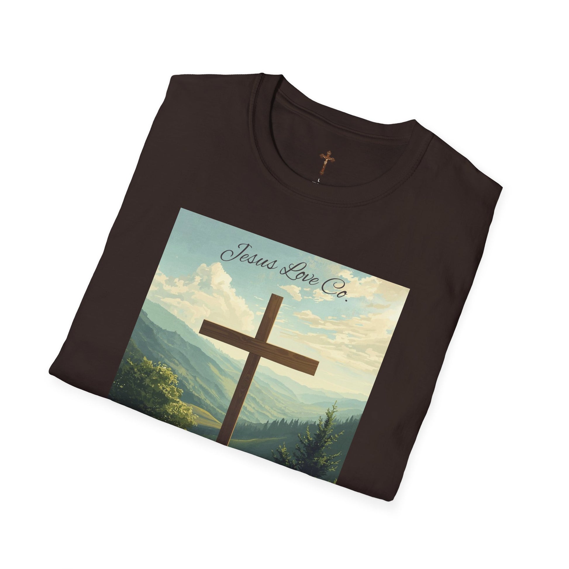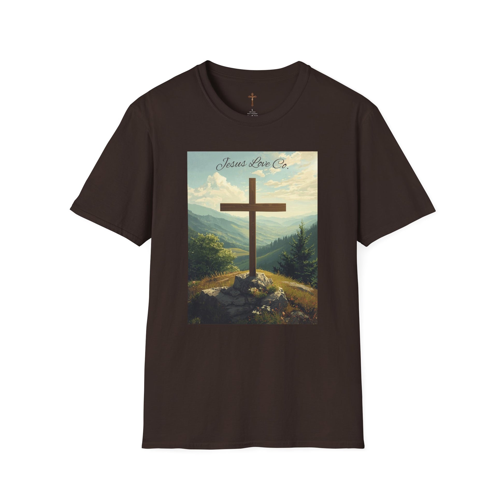 A soft, lightweight tee that carries a quiet, devotional presence. The design places a bold wooden cross against a sunlit mountain vista — the image feels like a pause at the top of a trail, when the wind eases and the valley opens below. Wear it to church gatherings, outdoor worship walks, or slow mornings with scripture. The crew neckline and classic fit keep the silhouette clean and easy to layer under a jacket or over a flannel. Built from ring-spun cotton with reinforced shoulders and a ribbed collar, it will sit comfortably on the body and hold its shape through repeated wear. The artwork reads like a personal reminder to breathe, reflect, and keep faith at the center of everyday moments.
