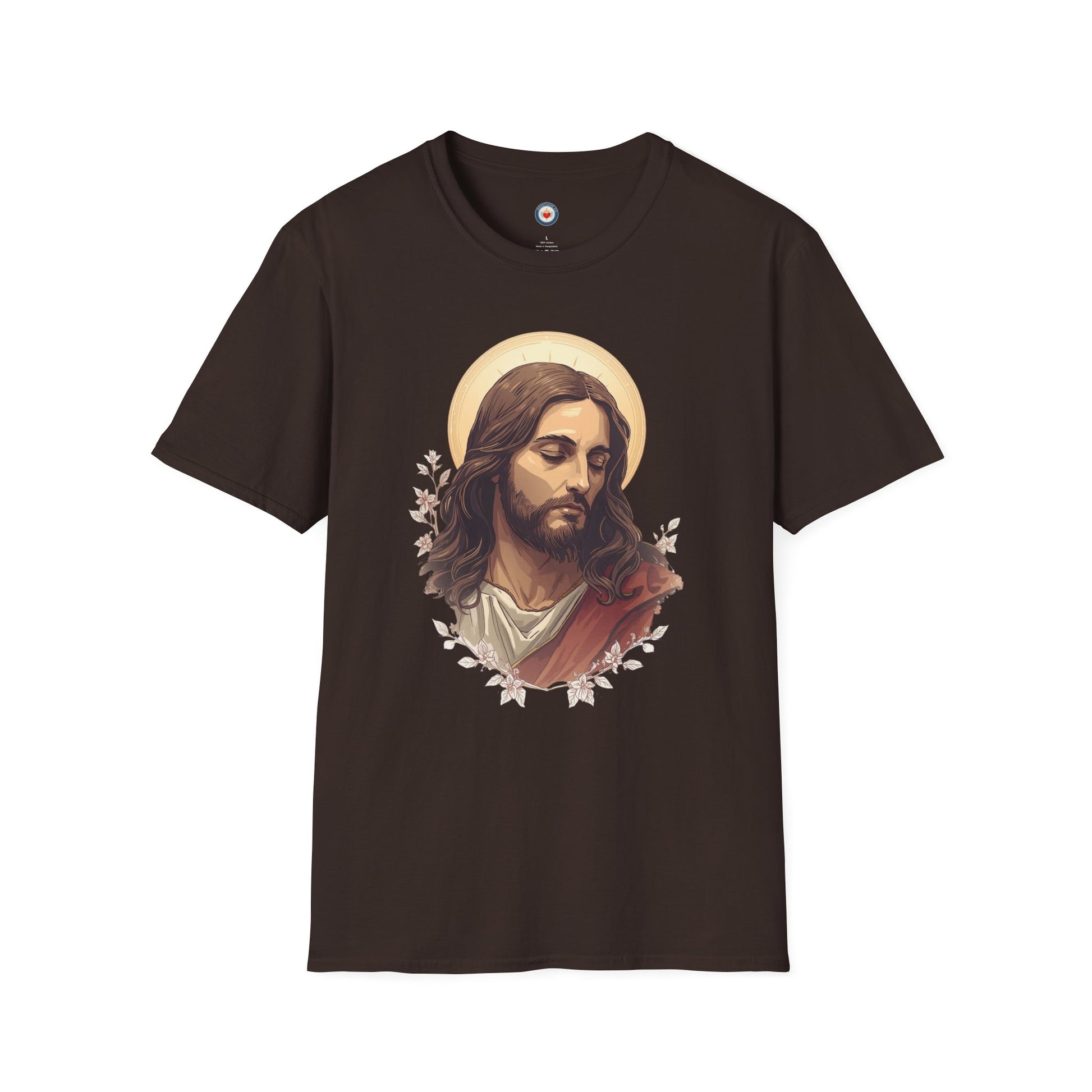 This portrait-style tee places a calming, oil-painting depiction of Jesus front and center, made to feel like a quiet pause in a busy day. The soft, lightweight cotton drapes easily over the shoulders and settles into a lived-in silhouette — a shirt you reach for when you want to feel grounded. Wear it layered under a worn jacket for evenings at a fellowship meeting, or alone during reflective mornings with coffee and scripture. The brushstroke texture of the graphic reads like a small devotional painting: intimate, reverent, and quietly expressive. It speaks to people who value understated faithwear — those who prefer meaningful symbols over loud statements. For gentle worship gatherings, contemplative retreats, or slow Sabbath Sundays, this shirt blends artful reverence with everyday comfort.